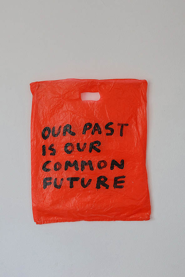 Presenting a diversity of works in a selection of already existing works and a site-specific intervention in the space of the MoCA-Skopje, the exhibition of text-based works, objects, and video, tries to establish new relations in the given context, clearly shows the ways in which Selmani wittily uses a specific form of humor to investigate and question the familiarity of everyday, usually bound in absurd traditions and hierarchical structures.
