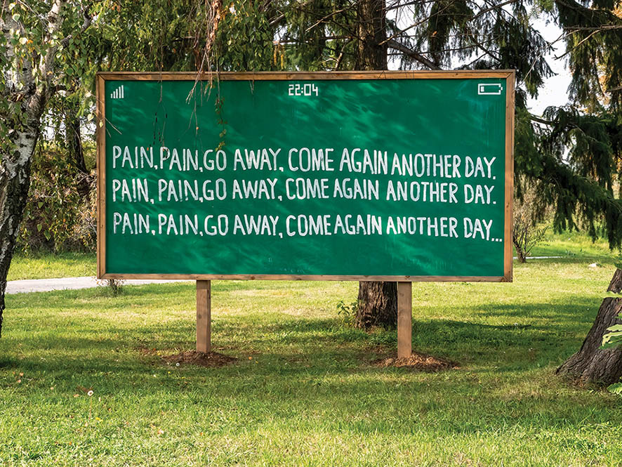Intervening in the realm of language, from old popular wisdom to poetry and children songs, Selmani’s practice touches upon the fears, troubles and worries expressed by ordinary people. He aims at deconstructing the underlying structures and the internalized cultural constructs in order to understand them, thus offering us a unique possibility to stand together and be confronted with powerful visual works with masterful simplicity. Dwelling in this state of strangeness where the poetic and the political intersect he is far from being a stranger, but instead finds his home.