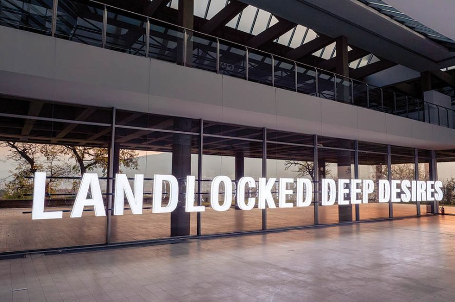 LANDLOCKED DEEP DESIRES, 2019, LED Plexiglass, CNC cut letters, 1700х100cm